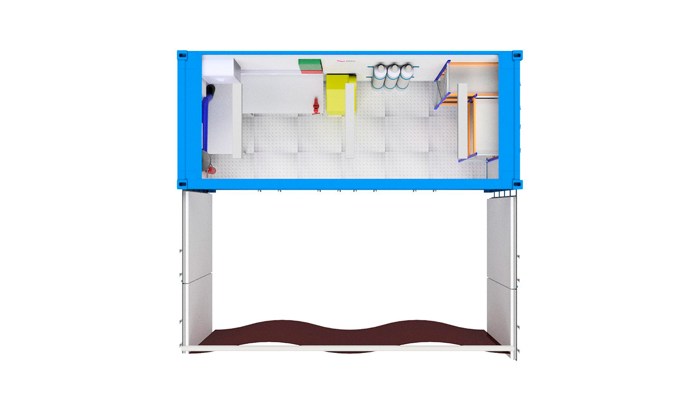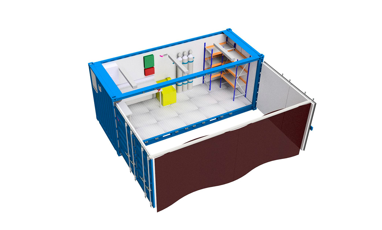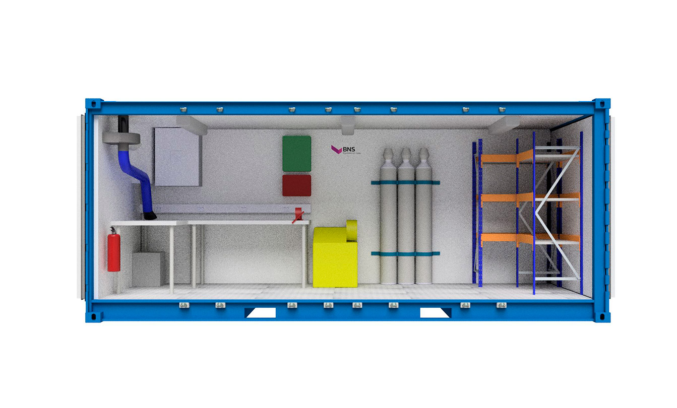 Sveisecontainere bygges med utgangspunkt i standard ISO-containere og kan fås i 10’, 20’ og 40’. Alle paneler og andre ståldetaljer er i Corten A og korrosjonstregt stål som gir høy styrke og lang levetid. De er innredet med verktøybenker, sveiseavsug og brannsikker kledning på vegger og tak. Stabil strømtilkobling og innebygde sikkerhetsfunksjoner gir et tryggere arbeidsmiljø og reduserer risikoen for brann eller røykspredning.