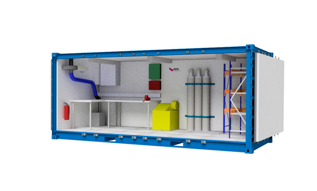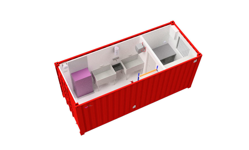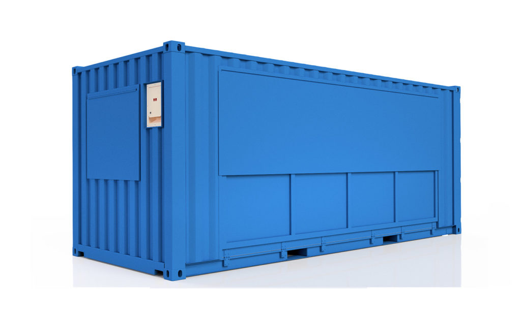 20′ miljøcontainer leveres med full sideåpning for enkel og effektiv lasting og lossing av miljøfarlig avfall. Den er utstyrt med et integrert oppsamlingskar på 1700 liter som standard.